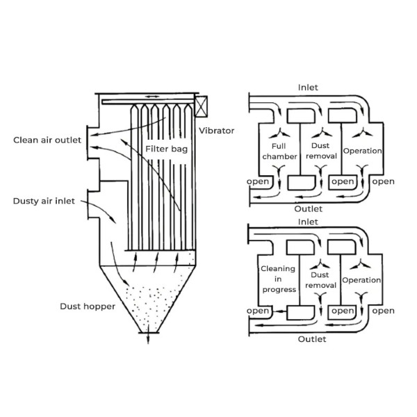 - Cleaning mechanism: Støvsamleren bør ha et pålitelig pulsstrålerengjøringssystem som bruker trykkluft for å blåse av støvet fra filterposene, og forhindre tilstopping.