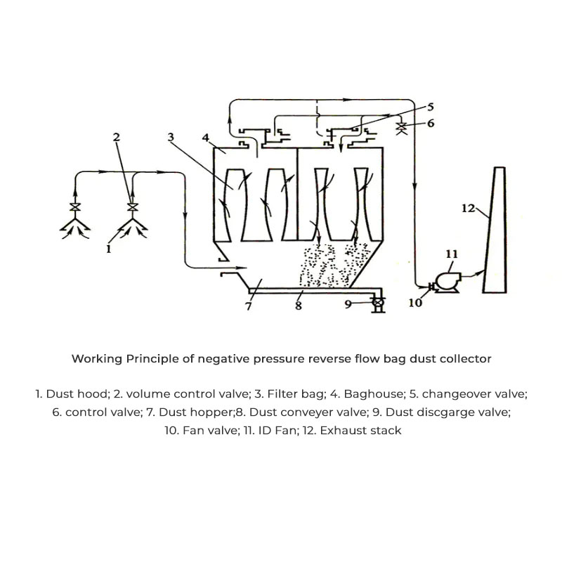 Støvsamlere for tilbakeblåsing av negativt trykk opererer ved høye luftmengder og undertrykk, noe som effektivt forbedrer støvfjerningseffektiviteten. De filtrerer nøyaktig små støvpartikler, og sikrer at avgasser oppfyller miljøstandarder og minimerer virkningen av støvforurensning på miljøet.